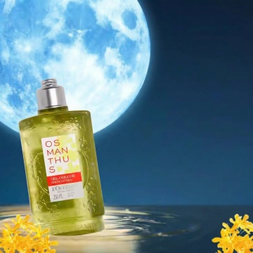 中式意境与3D重拟物结合,水墨晕染的水面倒影,玻璃质感香水瓶映衬粉樱,唯美感与梦幻感交织,尽显优雅东方美学。