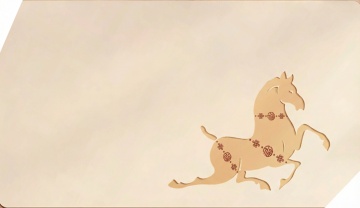 复古感单色剪影风,胶片质感呈现骏马轮廓,红调背景营造节日氛围。