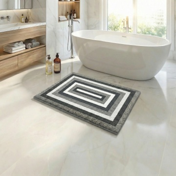 极简主义风格的卫生间室内设计,柔和的米白色与浅灰色调为主,整体明亮通透,自然光透过隐形光源均匀洒入,营造出干净、宁静、高级的氛围。浴室中央是悬挂式米白色洗手台,台面光滑整洁,台上放置简约设计的水龙头和几瓶透明瓶装洗漱用品,台下有隐藏式抽屉和开放式储物格,内置叠放整齐的毛巾与洗漱用品。洗手台上方是带LED灯带的长方形镜面柜,柜内隐约可见折叠整齐的毛巾,镜面清晰映照出浴室景象。右侧是白色壁挂式马桶,线条流畅。左侧为透明玻璃淋浴房,内部有简约的置物架和手持花洒。墙壁采用大块浅色瓷砖铺设,地面是光滑的白色大理石瓷砖,整体空间布局紧凑有序,功能分区明确。金属色毛巾架上挂着白色毛巾,与整体色调和谐统一。设计注重空间的简洁性与功能性,无多余装饰,强调材质本身的质感与光影的细腻变化,呈现出现代、简约、舒适的卫浴空间。