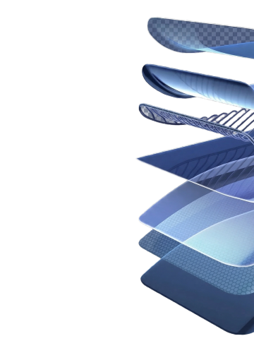 高端科技感3D渲染,主体为优雅飘逸的波浪形态结构,表面布满规则排列的圆形镂空孔洞,呈现出细腻的网格状质感和通透的镂空特性,材质表现为光滑且略带哑光的高级塑料或合成纤维质感,光线从画面上方柔和洒落,形成明亮的高光区域和渐变的阴影层次,背景为模糊的浅蓝色渐变条纹,营造出宁静而科技感十足的氛围,整体色调改为深邃的藏青色,保持原有的光影效果、镂空结构细节和波浪动态形态,强调材质的细腻肌理和光线的反射效果,画面构图聚焦于波浪结构的局部特写,突出其流动感和精致的工艺设计。