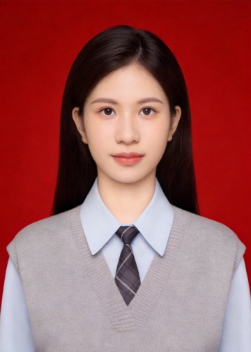 咖色学院风直发女生蓝底证件照