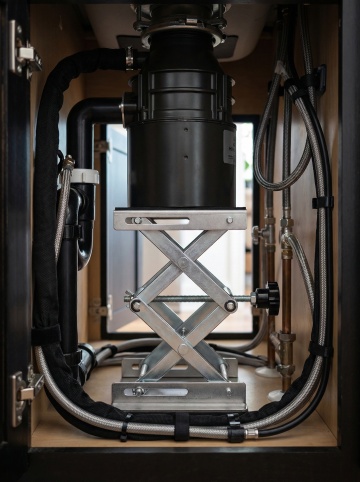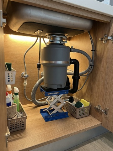 3D渲染风格的现代厨房水槽特写,不锈钢材质水槽搭配银色金属水龙头,白色台面与深灰色橱柜形成简洁对比,木质地板增添自然质感,柔和自然光从上方照射形成清晰光影层次,高光表现金属的光滑质感,整体呈现简约、干净、高级的家居氛围,不同角度展示水龙头与水槽的现代设计细节。