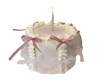 一个精致的圆形蛋糕,白色背景,蛋糕主体为淡紫色渐变奶油质地,表面覆盖着均匀的深紫色糖霜淋面,自然垂坠形成流畅的条纹,顶部边缘装饰着一圈螺旋状的白色奶油花,中央整齐摆放着7颗新鲜的蓝莓,蓝莓表面带有自然光泽和细小果蒂,蛋糕底部边缘有一圈精致的白色蕾丝状奶油花边,整体呈现出清新甜美的烘焙甜点风格,光影柔和,高光细腻,色彩过渡自然,具有高度写实的食物摄影质感。