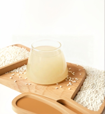 浅色背景上,一个浅棕色的圆形木碗中装满了金黄色的小米,小米颗粒饱满、大小均匀,呈现出自然的光泽感,整体画面明亮干净,突出小米的质感与色彩,营造出质朴、健康的氛围。