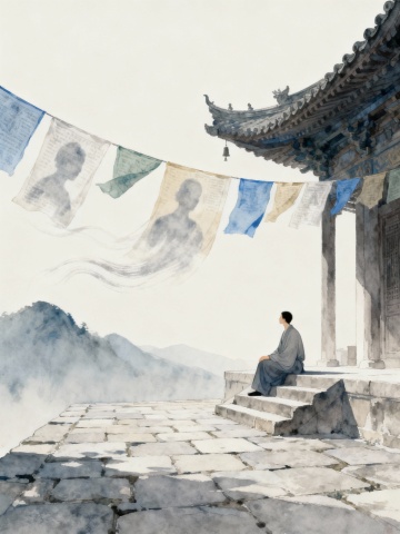 古典中式工笔风,水墨山水背景,超现实主义手法展现师徒对话,意境深远。
