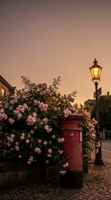 改变为莫兰迪色调的粉色玫瑰花丛,整体呈现柔和低饱和度的灰粉色调,花朵保持原有的层层叠叠的饱满花瓣形态和自然生长的姿态,绿色叶片转为灰绿色并带有细腻的纹理,背景是淡蓝色天空点缀着几缕白云,整体画面营造出宁静、雅致、复古的氛围,光线柔和均匀,具有油画般的质感和细腻的笔触。