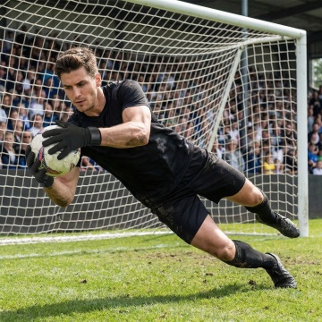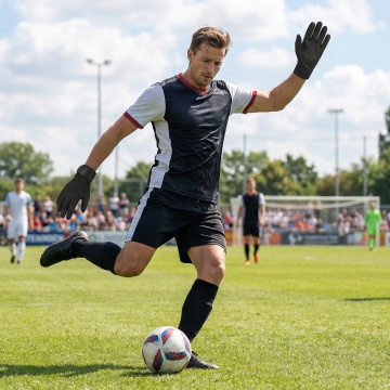卡通感与扁平风结合,动漫风格人物踢球瞬间,简约主义线条勾勒动感姿态,轻拟物设计增强视觉冲击,无节日信息。