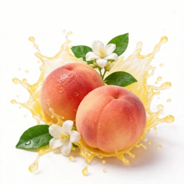 六个不同样式的桃子造型,以写实风格呈现,保留桃子的自然质感与细节,上下两行对齐排列,浅色背景,每个桃子造型均有不同的姿态和切面,色彩饱满,光影自然,呈现出新鲜水果的水润光泽,整体构图简洁大方,视觉层次分明