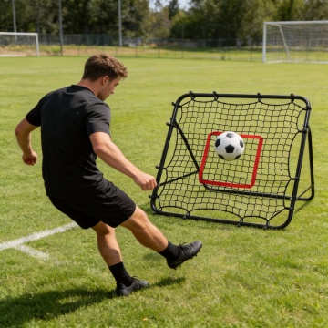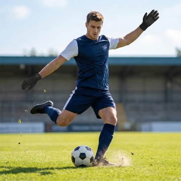 卡通感与扁平风结合,动漫风格人物踢球瞬间,简约主义线条勾勒动感姿态,轻拟物设计增强视觉冲击,无节日信息。