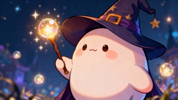梦幻甜萌的万圣夜,巫师少女骑扫帚飞越糖果摊,心形气球与南瓜灯交织,插画风+拟人风+水彩质感,温馨又奇幻。