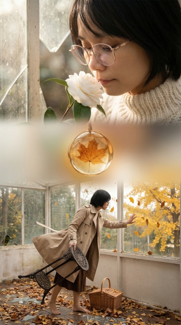 复古胶片风,双重曝光手法交织秋日梦境,光影朦胧中绽放文艺与唯美的静谧故事感。