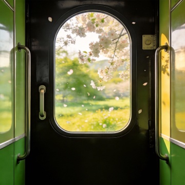 复古胶片风拼贴,双重曝光融合旧站台与现代列车,怀表与车票诉说时光故事,文艺超现实感交织时空旅人。
