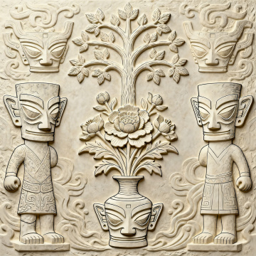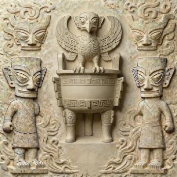 鎏金面具拟人化,3D立体呈现,古典神秘,国潮风设计,光影交错。