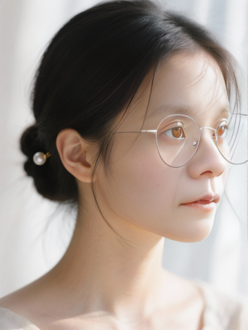 柔和光影勾勒清透轮廓,轻拟物风融合水彩质感,文艺优雅中透出实景细腻,眼镜折射静谧时光。