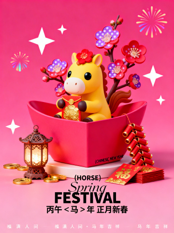 3D卡通马年新春祝福海报1