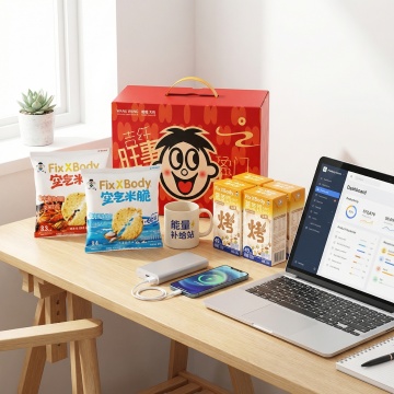 软3D风格的零食系列素材集合海报,纯色背景(非白色,如柔和的浅橙色),整体色彩明快活泼,展示6个完全不同种类的零食,包括巧克力棒、草莓味饼干条、洋葱圈、杏仁坚果、黄色方形糕点、白色薄片状点心,每种零食造型饱满立体,具有光滑的材质感和轻微的高光效果,零食包装设计简洁,带有清晰的产品名称和图案,所有零食整齐有序地排列在画面中,形成均衡的视觉布局,营造出诱人、欢快的氛围,符合食品宣传海报的设计感,视觉层级清晰,主体零食突出,信息传达高效。