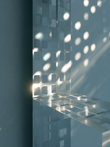 极简几何空间,混凝土肌理与光影交错,3D渲染呈现未来感工业美学,静谧中透出现代设计力量。