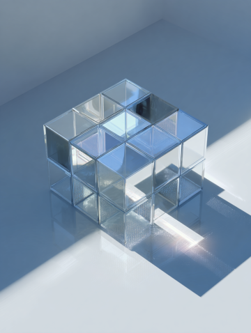 极简主义风格的3D几何装饰图案,由多个大小不一的浅蓝色和白色渐变立方体组成,立方体表面光滑,带有柔和的光影效果,呈现出轻微的悬浮感,整体构图简洁干净,色彩和谐统一,具有现代设计感,适合作为装饰元素使用,背景为纯白色,无文字和其他多余元素。