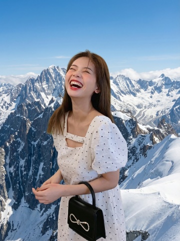 雪林深处,背影悠然踏雪前行,光影斑驳间尽显冬日静谧与浪漫。手捧雪花,阳光散射成梦幻光晕,松枝缀满节日彩球,胶片质感中流淌着温暖的圣诞氛围。
