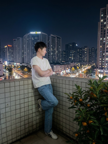 月光下的都市屋顶,工业风金属罐与夜景交融,胶片质感捕捉情侣间的浪漫与温馨,光影交错间流露现代文艺气息。