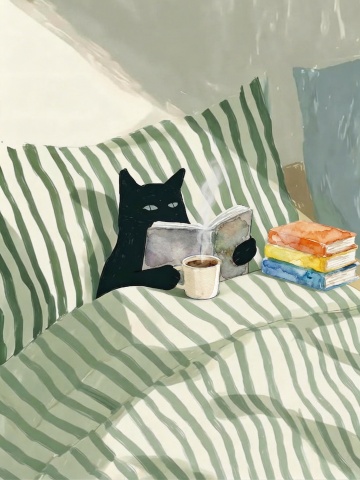 温馨插画风,拟人卡通女孩与真人共饮咖啡,营造节日般温暖氛围。
