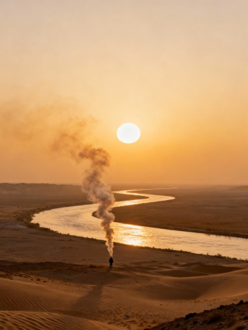 复古感与中式意境交织,双重曝光手法融合石刻风浮雕质感,光影中透出沉郁故事感,实景沙漠背景衬托油画般沧桑氛围。