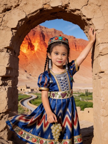 民族风刺绣长裙搭配精致头饰,古典与时尚交融,实景光影中展现西域风情的唯美与优雅。