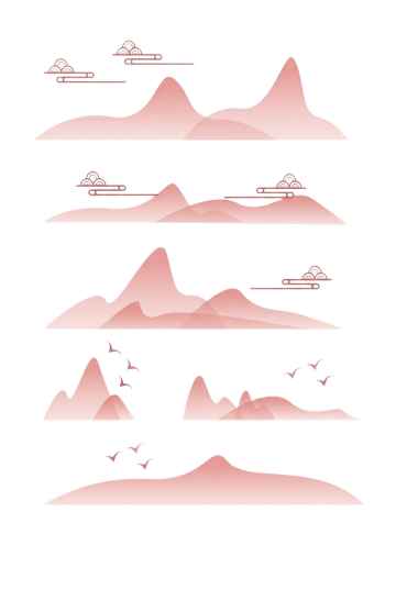 一组四幅中国风山水插画的系列集合,每幅均采用纯色背景,保持淡雅水墨渐变质感与柔和朦胧的光影效果,笔触细腻且带有轻微的颗粒纹理,构图遵循对称与视觉引导线原则。第一幅:主体为深浅不一的靛蓝色山峦,云雾以淡紫灰色呈现,营造宁静悠远的氛围;第二幅:以暖橙色为主调的层叠山峰,搭配米白色云雾,展现温暖和煦的意境;第三幅:墨绿色山体与青灰色云雾交织,呈现沉稳深邃的山水景致;第四幅:粉紫色山峦配以浅粉色云雾,营造柔美雅致的视觉感受。四幅插画规整排布,元素类目统一为远山、近峰与缭绕云雾,整体风格和谐统一,色彩变换丰富,具有清晰的视觉层级和高效的信息传达效率,符合新中式审美与装饰需求。