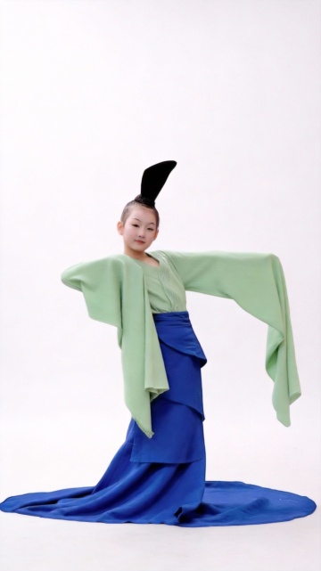 沙漠中,古典舞者身着国潮服饰,飘带飞扬,尽显民族优雅与唯美。