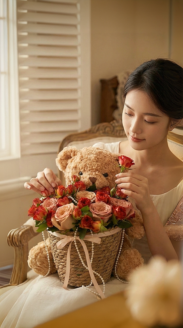 甜美清新插画风,拟人娃娃与花相伴,简约主义设计,尽显温柔浪漫。详情