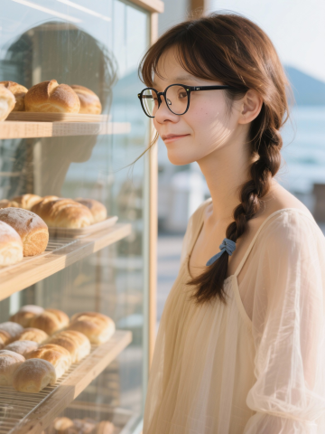清新柔和的胶片风画面,轻拟物与水彩质感交融,光影朦胧中透出文艺唯美,实景感十足的面包店日常,温暖舒适,宛如春日午后。