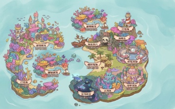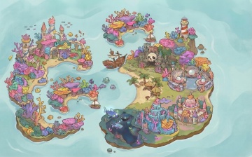清新插画风,卡通海盗船停泊热带沙滩,椰树与木桥点缀,营造夏日海岛冒险氛围。