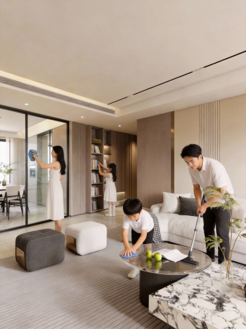 极简主义风格室内设计,以米白色和浅木色为主色调,柔和自然光透过白色纱帘洒入,营造明亮通透氛围,浅米色布艺转角沙发搭配橙色和米白色靠垫,低矮木质茶几上摆放橙色花瓶与绿植,灰色地毯铺于浅色木地板,简约石膏线条装饰墙面,整体空间干净利落,细节处体现温暖舒适感,不同角度展现室内空间的结构美感与光影变化。