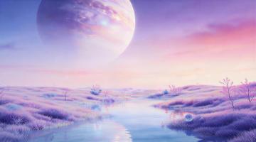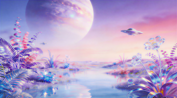 梦幻夜海,霓虹光影交织,水晶浮空,荧光水母翩跹,赛博椰树缠绕紫光,3D虚拟自然与未来感碰撞,浪漫神秘,唯美感爆棚。