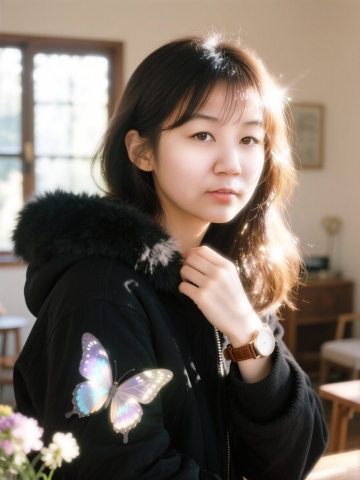 胶片风写真,柔和光影勾勒文艺气质,实景感背景衬托舒适氛围,简约构图传递静谧情绪。