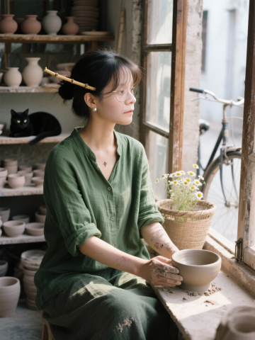 东亚风手作场景,粘土质感与浮雕细节交织,质朴清新中透出文艺静谧,手工陶艺传递舒适治愈的日常美学。
