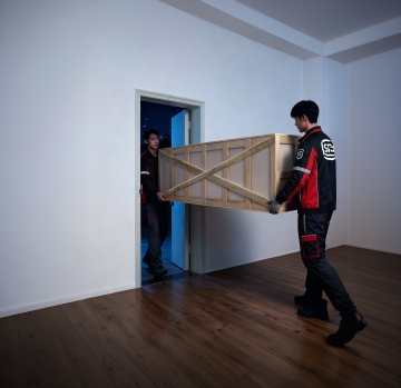 超写实风格,手持SF快递箱的男性快递员,戴着黑色SF棒球帽,身着灰色制服,制服有红色领边和袖口,面部有红晕,嘴角上扬,表情亲切自然,眼神温和有神,制服上有SF标志,快递箱上有SF标志和图案,整体光影柔和,立体感强,材质细节丰富,背景简洁白色,突出人物主体,职业形象鲜明,传递专业可靠的服务感。