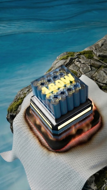 静谧湖畔,现代极简加湿器置于岩石之上,水雾轻扬,倒影清晰,融合自然与科技,呈现清爽清透的轻拟物风实景画面。