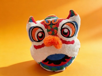 国潮风刺绣醒狮包,重拟物毛发生长设计,绒面质感搭配金线绣纹,中式喜庆氛围浓郁,融合民族元素与节日祝福。
