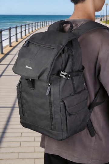 简约现代背包,置于温馨书房,阳光洒落,营造舒适感。