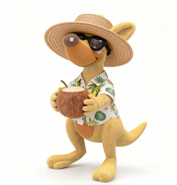 可爱卡通猪拟人化设计,头戴草帽,手抱西瓜,夏日清新风格。