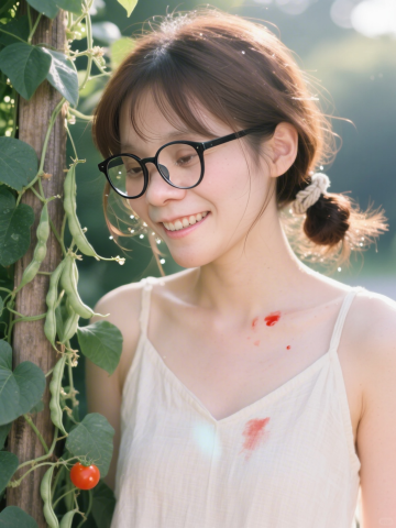 清新自然的东亚风少女,胶片质感与水彩晕染交织,柔和光影中透出文艺唯美,实景感十足的田园瞬间。