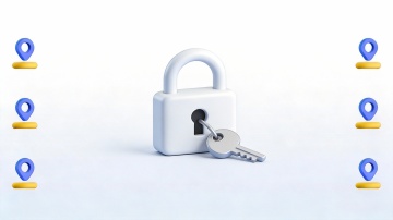 未来感与科技感交融的3D微缩场景,透明玻璃风盾牌守护数据核心,清透质感与体积感结合,展现智能安全防护主题。