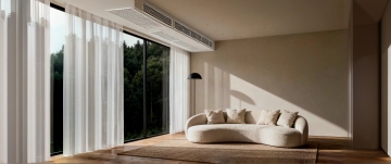 一台白色壁挂式空调,机身呈简洁的长方形设计,线条流畅,表面光滑有细腻的哑光质感,正面下方设有水平排列的出风口,出风口内部透出柔和的浅蓝色光带,空调整体悬浮于纯白色背景之上,光线均匀柔和,无阴影,无任何品牌标识、文字、二维码及多余装饰元素,呈现出干净、简约、专业的产品展示效果。