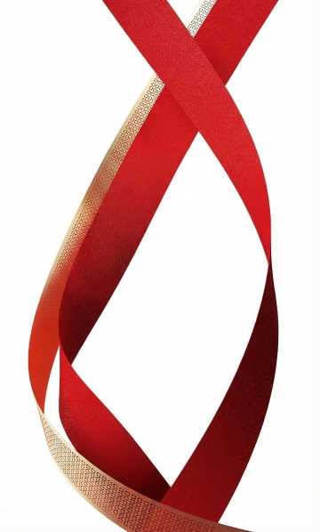 3D渲染风格,以纯净的白色为背景,画面底部有一条红色的飘带,飘带上方边缘有一条金色的飘带,两条飘带呈现出自然的波浪形褶皱,具有光滑的丝绸质感和明亮的高光,整体构图简洁大气,留白充足,色彩对比鲜明,营造出简约而优雅的氛围。