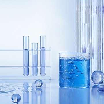 极简主义风格护肤品包装盒,白色主体搭配蓝色字体“SMART MAGIC”,置于浅蓝色渐变背景中,周围环绕大小不一的透明玻璃球体,球体表面有柔和反光与清晰阴影,光线从顶部偏左照射形成立体感,整体氛围纯净、科技感、高端,无任何文字内容,仅保留产品盒与玻璃球元素,构图采用居中偏左布局,留白充足,具有现代产品摄影的细腻质感与柔和光影效果。