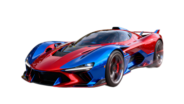 一张无文字汽车海报,保持与原图一致的超写实风格,深邃的暗蓝色调,神秘而充满力量感的氛围。画面中央是一辆线条流畅、造型前卫的超级跑车,从正面稍低角度拍摄,展现其极具攻击性的前脸设计和锐利的LED大灯。跑车停在湿润的黑色地面上,车头灯和尾灯发出耀眼的蓝色光芒,在地面上形成清晰的倒影。背景是深蓝色的夜空和轮廓朦胧的远山,弥漫着蓝色的雾气,营造出梦幻而神秘的感觉。整体构图采用中央对称式,光影对比强烈,突出跑车的科技感和速度感,没有任何文字、LOGO、电话地址及二维码等元素。