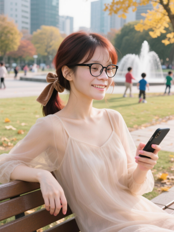 胶片风秋日公园写真,轻拟物设计融入自然光影,文艺感与清新柔和交织,实景感十足,传递舒适惬意的秋日氛围。