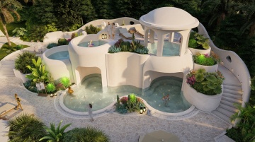 高清晰度写实摄影风格,夏日泳池场景,清澈见底的蓝绿色池水,阳光透过水面形成波光粼粼的光影效果,池边铺有浅棕色防滑地砖,白色与深蓝色相间的瓷砖池壁,金属质感的银色泳池扶手延伸至水中,水面漂浮着几片鲜艳的粉色和黄色花瓣,池边摆放着一把带有彩色条纹的遮阳伞和几张藤编躺椅,旁边放着一杯冰镇饮料和一本翻开的杂志,远处有几棵高大的棕榈树投下斑驳的阴影,整体画面呈现出明亮、清爽、悠闲的夏日氛围,光线充足,色彩饱和度高,细节清晰,无LOGO、电话地址及二维码。