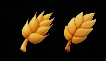 3D渲染的金色麦穗,具有光滑的金属质感和细腻的高光阴影,呈现出优雅的弯曲形态,麦穗颗粒饱满,排列整齐,整体造型精致华丽,白色背景干净简洁,突出主体。